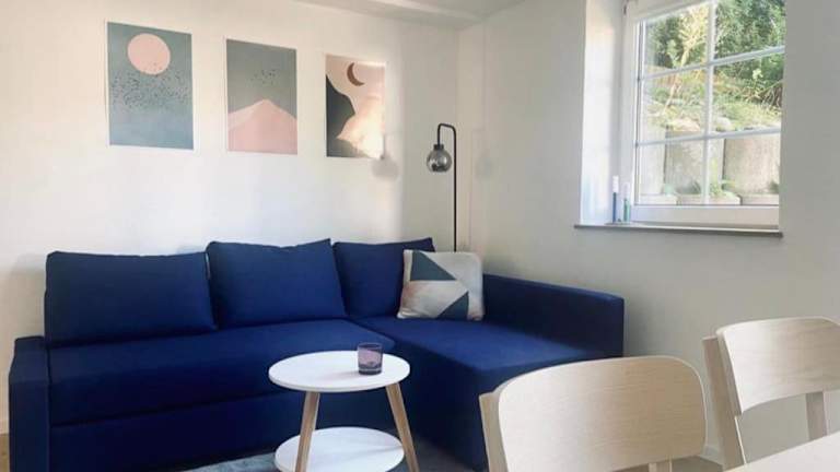 Die gut ausgestattete Küche der Ferienwohnung beinhaltet einen Kühlschrank und einen Ofen, was die Selbstverpflegung ermöglicht.