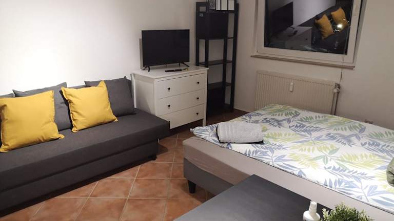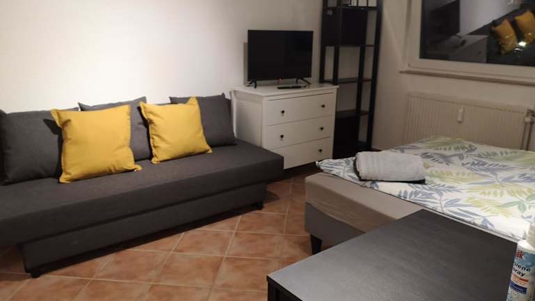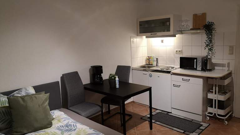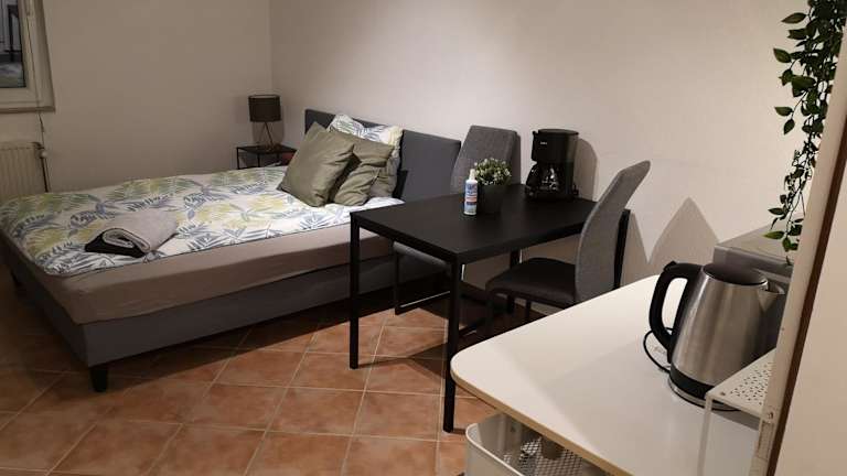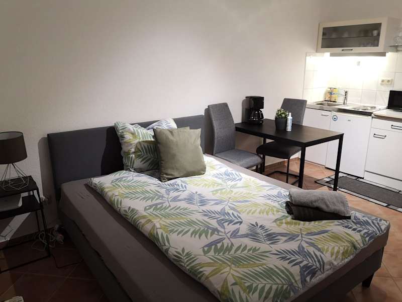 Das Apartment besteht aus einem Schlafzimmer, einer Küchenzeile und einem Badezimmer. Die Einrichtung ist gemütlich und bietet den Gästen ein angenehmes Ambiente. Zur Unterhaltung steht ein Flachbild-TV zur Verfügung. Das Apartment ist gut ausgestattet und verfügt über alles, was Sie für einen komfortablen Aufenthalt benötigen.