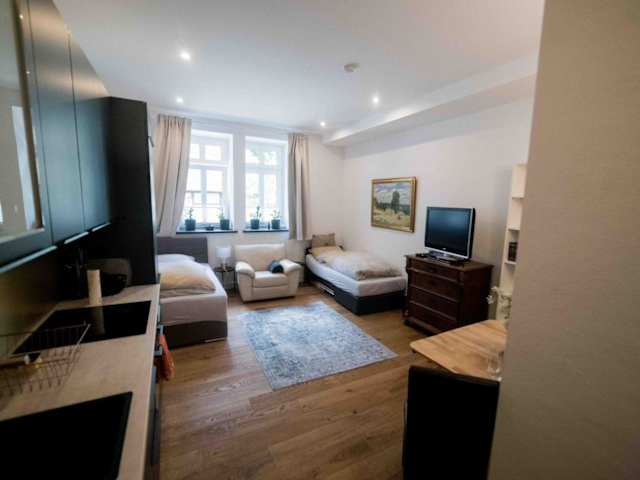 Die Ferienwohnung verfügt über ein Schlafzimmer, ein Badezimmer mit Dusche, eine gut ausgestattete Küche, die mit einem Kühlschrank und einem Geschirrspüler ausgestattet ist, sowie einen Flachbild-TV mit Satellitenkanälen. Zusätzlich werden Handtücher und Bettwäsche bereitgestellt.