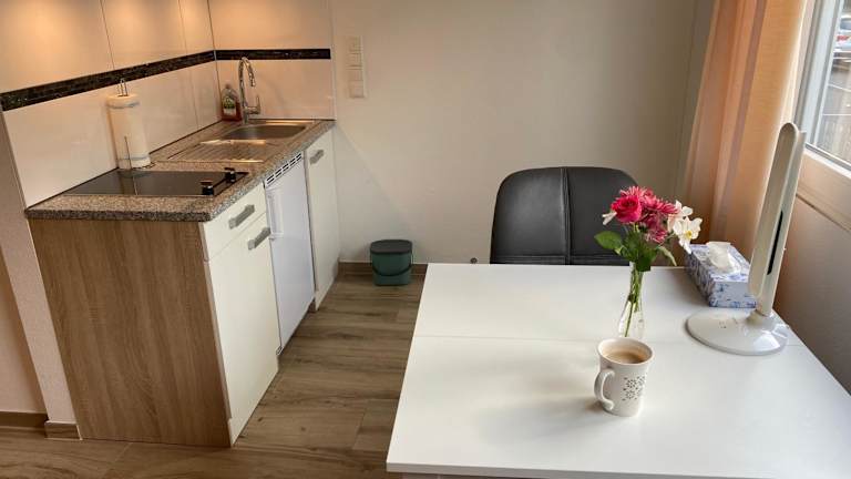 Die Ferienwohnung verfügt über ein Schlafzimmer und ist mit einer Küchenzeile ausgestattet, die einen Kühlschrank und eine Herdplatte umfasst. Zudem gibt es ein Badezimmer mit Dusche und Haartrockner. Handtücher und Bettwäsche werden zur Verfügung gestellt. Das Studio ist klimatisiert und zeichnet sich durch eine angenehme Heizungsanlage aus.