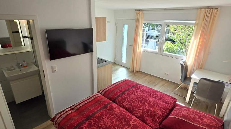 Das Gemütliche und komfortable Studio in Frankfurt bietet Übernachtungsmöglichkeiten mit modernen Annehmlichkeiten, darunter kostenloses WLAN und einen Flachbild-TV. Es handelt sich um eine privat geführte Ferienwohnung, die in einer ruhigen, Nichtraucherumgebung gelegen ist. Die Unterkunft ist familienfreundlich und Haustiere sind auf Anfrage erlaubt. Aufgrund der Hausordnung sind Feiern nicht gestattet, und der Check-in ist für Gäste ab 18 Jahren vorgesehen.