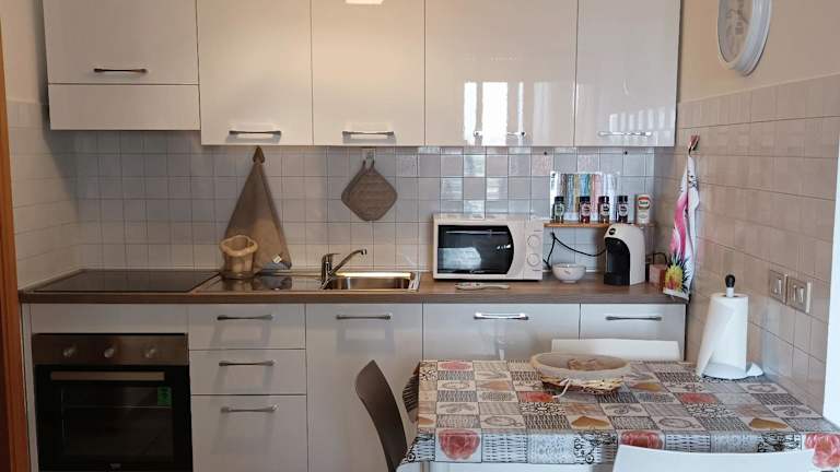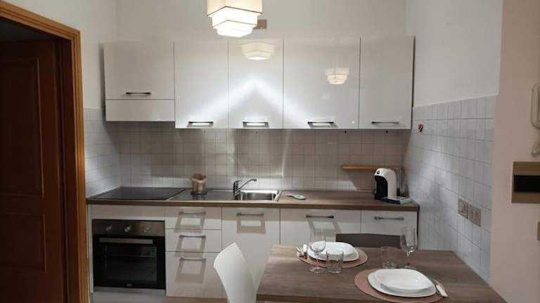 Die Ferienwohnung besteht aus einem Schlafzimmer, einem Wohnzimmer und einer voll ausgestatteten Küche, die über einen Kühlschrank und eine Kaffeemaschine verfügt. Des Weiteren stehen ein Badezimmer mit Bidet sowie einer Badewanne oder Dusche zur Verfügung. Handtücher und Bettwäsche werden bereitgestellt. Die Unterkunft ist klimatisiert und bietet Nichtraucherzimmer sowie einen Aufzug.