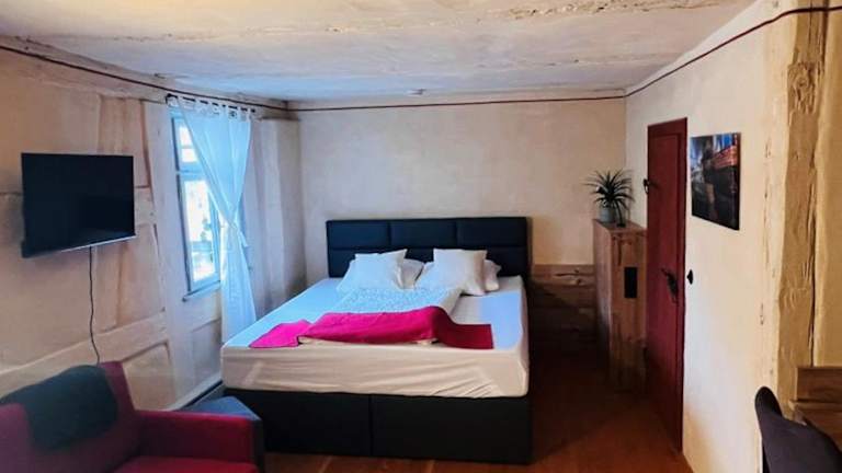 Genusspur - Schiefer Salon ist eine Ferienwohnung, die in einem historischen Gebäude aus dem Jahr 1500 untergebracht ist. Die Unterkunft bietet kostenloses WLAN und einen Flachbild-TV und ist privat geführt. Es gelten Hausregeln, die unter anderem Junggesellen-/Junggesellinnenabschiede untersagen. Der Check-in ist zwischen 14:00 und 22:00 Uhr möglich und der Check-out zwischen 08:00 und 11:00 Uhr.