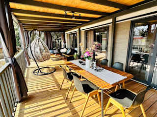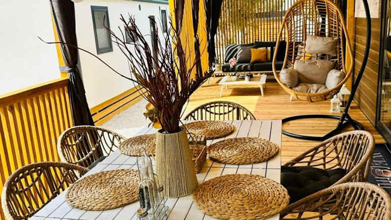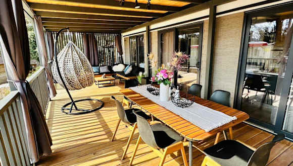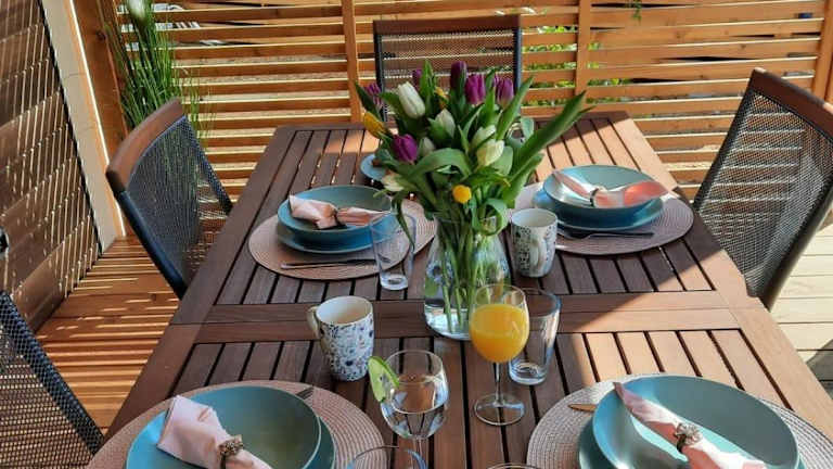 Die Unterkunft bietet eine Terrasse mit Gartenblick, einen Sitzbereich, einen Satelliten Flachbild-TV und eine voll ausgestattete Küche mit Kühlschrank, Geschirrspüler, Mikrowelle, Kaffeemaschine und Wasserkocher. Zu den weiteren Annehmlichkeiten gehören ein eigenes Badezimmer mit Dusche und Haartrockner sowie ein Grill vor Ort.