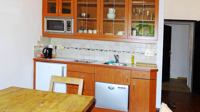 Die Zimmer verfügen über eine Küchenzeile, die mit einem Kühlschrank, einem Geschirrspüler, einer Mikrowelle, einer Kaffeemaschine und einem Wasserkocher ausgestattet ist, was Selbstverpflegung ermöglicht.