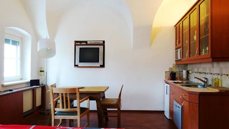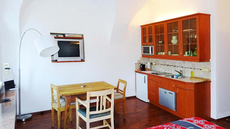 Die Gewölbezimmer sind funktional eingerichtet und bieten eine Küchenzeile. Es sind Unterkünfte mit kostenlosem WLAN und TV verfügbar.
