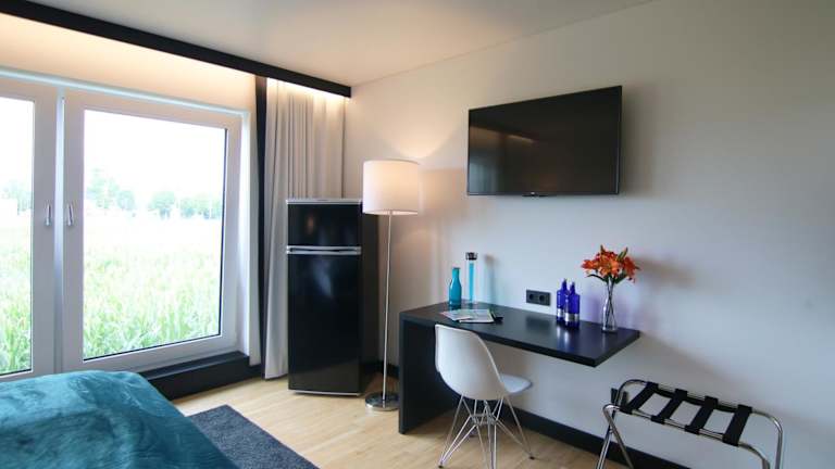 Das Apartment im GI Hotel by WMM Hotels verfügt über ein gemütliches Schlafzimmer, eine praktische Küchenzeile mit Kühlschrank und Kochfeld sowie ein Badezimmer mit Dusche und kostenlosen Pflegeprodukten. Handtücher und Bettwäsche werden Ihnen zur Verfügung gestellt, so dass Sie sich um nichts kümmern müssen. Das Apartment bietet Ihnen alles, was Sie für einen komfortablen Aufenthalt benötigen.