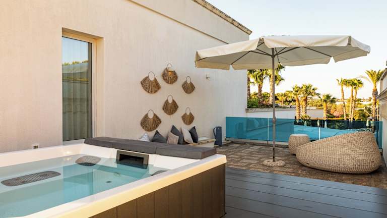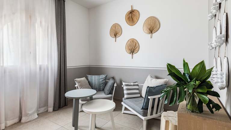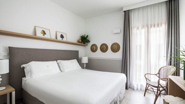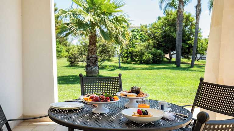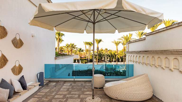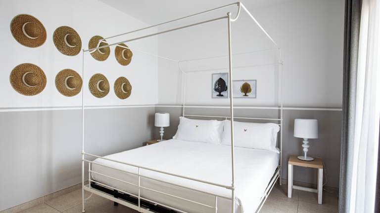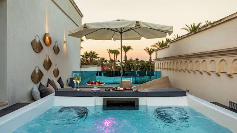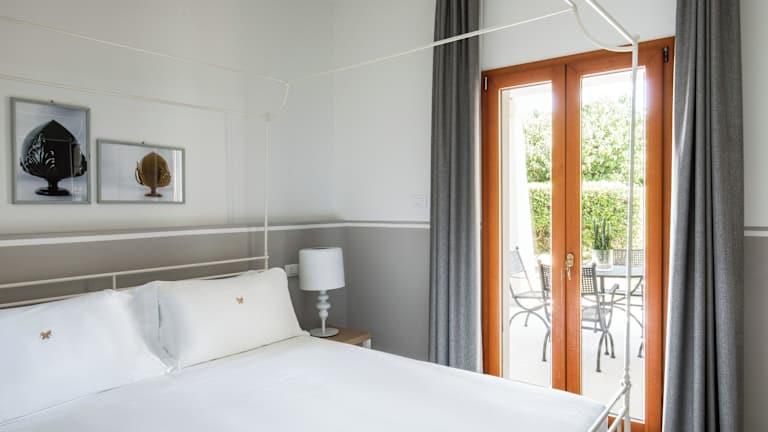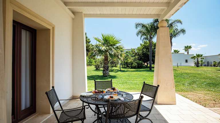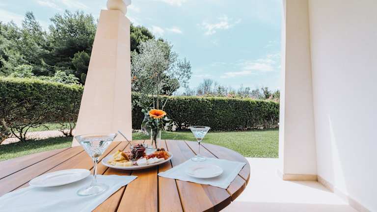 Die Suiten im Giardino Dei Pini sind elegant eingerichtet und bieten einen eigenen Garten und eine Terrasse. Die Badezimmer sind mit einer Hydromassage-Dusche oder einer Whirlpool-Badewanne ausgestattet. Die Architektur des Hotels spiegelt den mediterranen Stil wider und die Farben des Salento schaffen eine warme und einladende Atmosphäre.