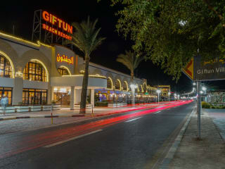 In erster Reihe am flach abfallenden Sandstrand des Roten Meers gelegen präsentiert sich das Giftun Azur Resort in zentraler Urlaubslage. Ein schnelles Ankommen im Hotel ist garantiert: Zum internationalen Flughafen sind es nur 10 Fahrminuten. Auch die Altstadt Hurghadas ist in weniger als 20 Minuten erreichbar und wartet darauf, erkundet zu werden.