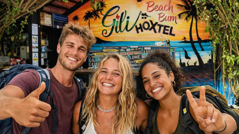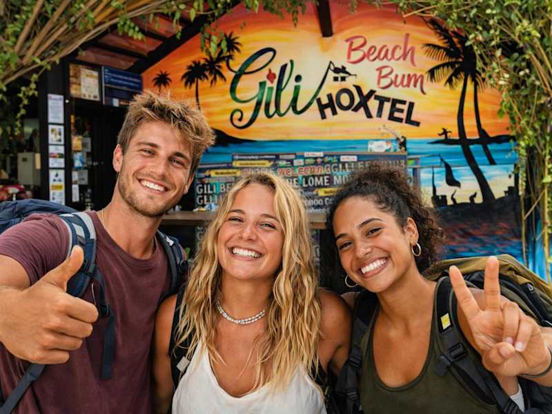 Das Gili Beach Bum Hotel auf Gili Trawangan ist der perfekte Ort für Ihren Urlaub. Mit seiner günstigen Lage in der Nähe der Schildkröten-Auffangstation und des Hafens bietet das Hotel eine komfortable Unterkunft mit kostenfreiem WLAN und einer Auswahl an Zimmern mit Balkonen und Terrassen. Genießen Sie den Aufenthalt in diesem Hotel, das auch über eine Gemeinschaftslounge und Geschäfte verfügt.