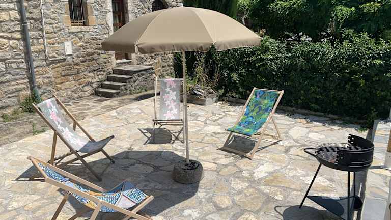 Das Hotel bietet Übernachtungsmöglichkeiten in Form eines Ferienhauses mit einer großen Terrasse und Bergblick. Die gesamte Unterkunft ist mit kostenlosem WLAN ausgestattet und für Nichtraucher sowie Familienzimmer geeignet. Ein Parkplatz steht vor Ort zur Verfügung, und Haustiere sind gestattet.