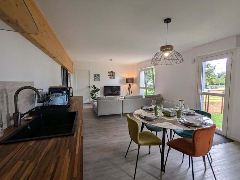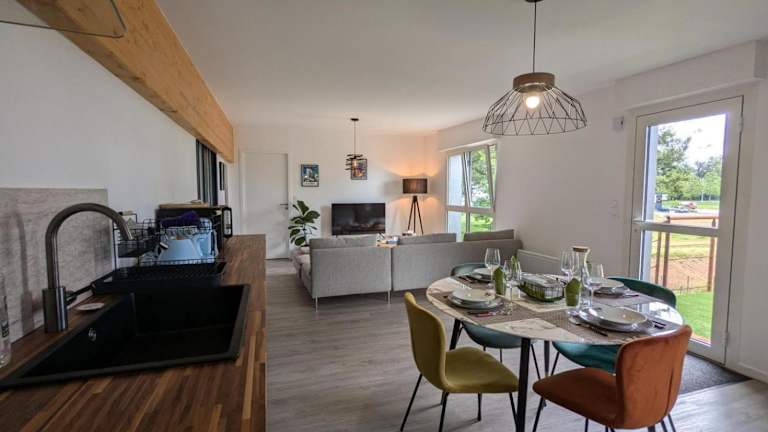 Die Ferienwohnung verfügt über zwei Schlafzimmer und ein Badezimmer. Zur Ausstattung gehören Bettwäsche und Handtücher, sowie ein Flachbild-TV und ein Essbereich. Die voll ausgestattete Küche ermöglicht eine unabhängige Selbstverpflegung. Eine Terrasse mit Blick auf den Garten lädt zum Entspannen ein.