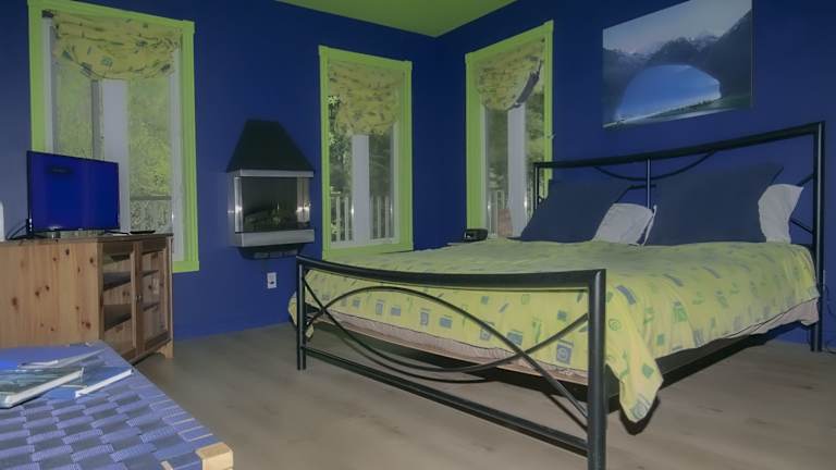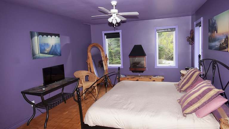 Die Themenzimmer im Gîte Crystal Inn in Mont-Tremblant sind individuell gestaltet und bieten eine gemütliche Atmosphäre. Jedes Zimmer verfügt über einen Kamin und einen TV mit DVD-Player für entspannte Abende. Ein eigenes Bad ist ebenfalls vorhanden.