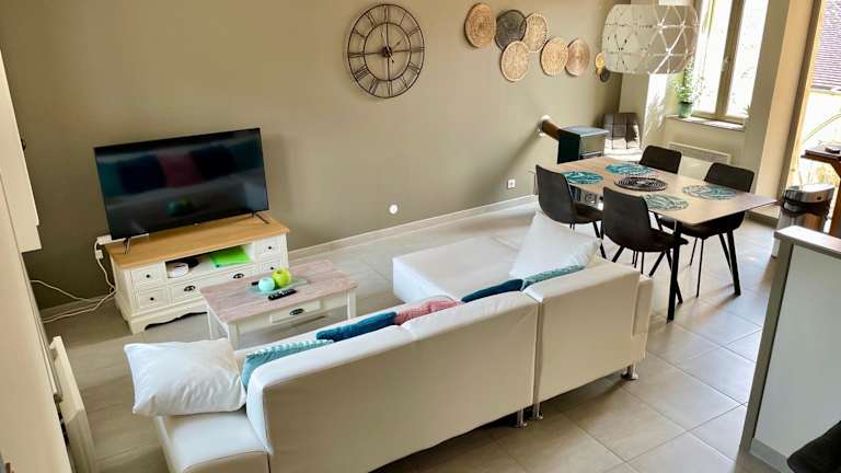Das Gîte de la petite charriere in Santenay ist ein charmantes Ferienhaus, das seinen Gästen eine gemütliche und komfortable Unterkunft bietet. Mit einer Gemeinschaftslounge, einer Terrasse und kostenfreiem WLAN können Sie hier entspannen und den Bergblick genießen. Das Ferienhaus verfügt über eine gut ausgestattete Küche, geräumige Schlafzimmer und ein modernes Badezimmer. Zusätzlich bietet das Ferienhaus einen Fahrradverleih, um die Umgebung zu erkunden. Die Lage des Ferienhauses ermöglicht es Ihnen, das Hospices Civils de Beaune und den Bahnhof Beaune schnell zu erreichen.