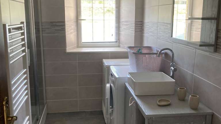 Das Ferienhaus bietet 2 gemütliche Schlafzimmer, eine voll ausgestattete Küche mit Kühlschrank und Geschirrspüler sowie ein modernes Badezimmer mit Dusche, Haartrockner und Waschmaschine. Handtücher und Bettwäsche werden gestellt, um Ihren Aufenthalt so angenehm wie möglich zu gestalten.