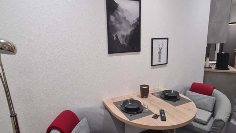 Die Ferienwohnung verfügt über ein Schlafzimmer sowie eine Küche, die mit einem Kühlschrank und einem Geschirrspüler ausgestattet ist. Des Weiteren stehen ein Badezimmer mit Dusche, Haartrockner und Waschmaschine zur Verfügung. Handtücher und Bettwäsche werden bereitgestellt. Zu den weiteren Annehmlichkeiten gehören Internetzugang, Heizung und Nichtraucherzimmer.