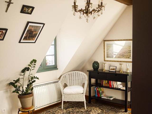 Gite Traditionnel au Centre Historique d'Éguisheim ist eine Ferienwohnung, die einen Blick auf die Stadt und die Berge bietet. Die Unterkunft wird von einem privaten Gastgeber geführt und erlaubt keine Feierlichkeiten wie Junggesellenabschiede. Die Mindestalter für den Check-in beträgt 18 Jahre, während für Gäste kein Mindestalter besteht. Haustiere sind nicht gestattet.
