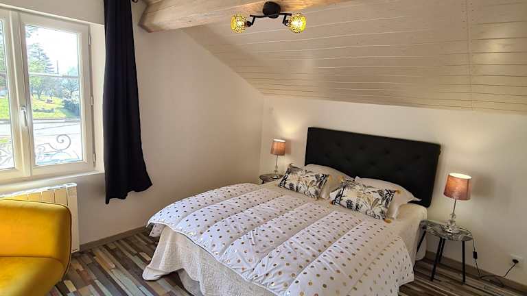 Das Gites Domaine de la Rochere liegt in Domsure, nur 37 km von der Ainterexpo und dem Königlichen Kloster von Brou entfernt. Die malerische Umgebung bietet eine Vielzahl von Möglichkeiten, die Natur zu erkunden und Outdoor-Aktivitäten nachzugehen. Die Gegend lädt zum Wandern und Angeln ein und bietet eine entspannte Atmosphäre abseits des Trubels der Stadt. Der nächstgelegene Bahnhof Bourg-En-Bresse und der Golfplatz Val de Sorne sind ebenfalls leicht zu erreichen, so dass Sie die Umgebung bequem erkunden können.