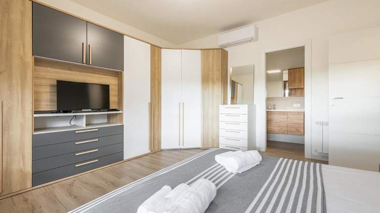 Die Ferienwohnung umfasst zwei Schlafzimmer, ein Wohnzimmer sowie eine voll ausgestattete Küche mit Kühlschrank und Kaffeemaschine. Es gibt zwei Badezimmer mit Bidet und Dusche. Handtücher und Bettwäsche werden bereitgestellt. Die Unterkunft ist eine Nichtraucherunterkunft.