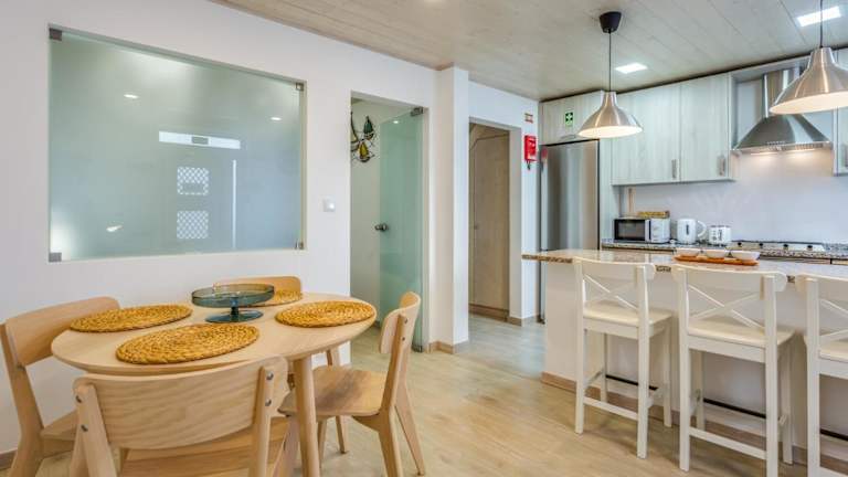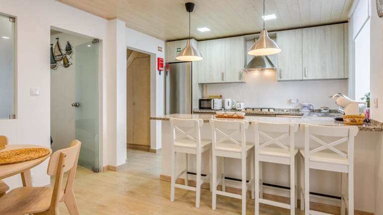Das Duplex-Apartment verfügt über 1 Schlafzimmer, ein Wohnzimmer und eine voll ausgestattete Küche, die mit einem Kühlschrank und einer Kaffeemaschine ausgestattet ist. Es gibt außerdem 2 Badezimmer, die mit einer Dusche und einem Haartrockner ausgestattet sind.