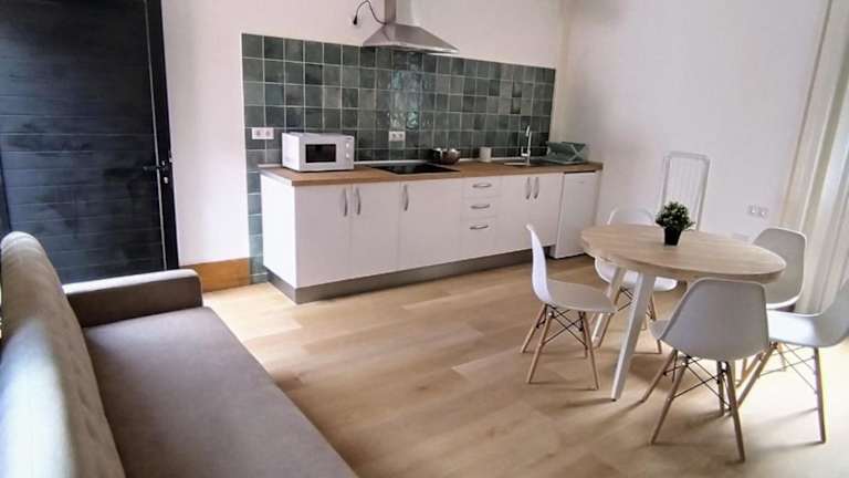 In einigen Wohneinheiten der Unterkunft ist eine Küchenzeile vorhanden, ausgestattet mit Kühlschrank, Mikrowelle und Herdplatte. Die Zimmer sind in unterschiedlichen Konfigurationen erhältlich, um die Bedürfnisse von Familien und anderen Gästen zu erfüllen.