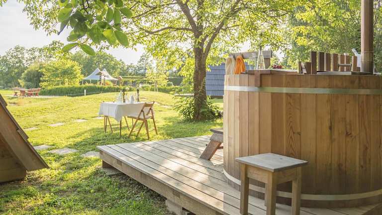 Das Glamping Bizjak bietet komfortable Zelt-Lodges mit einem herrlichen Blick auf den Garten. Die Unterkünfte sind gemütlich eingerichtet und verfügen über kostenfreies WLAN.
