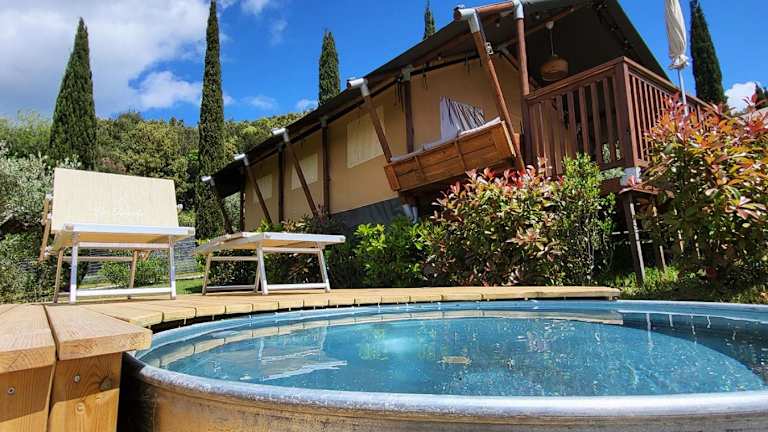 Glamping Le Tegole ist eine Unterkunft, die Übernachtungsmöglichkeiten in Form von Glamping bietet. Die Ausstattung umfasst einen saisonalen Außenpool, einen Garten, eine Terrasse und einen Tennisplatz, die den Gästen einen komfortablen Aufenthalt ermöglichen.