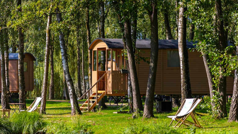 Glamping Limburg - nabij Nationaal Park Hoge Kempen bietet eine einzigartige Übernachtungsmöglichkeit mit einem Garten, einer Terrasse und einer Bar. Gästen stehen kostenfreies WLAN und Seeblick zur Verfügung. Die Unterkunft umfasst einen Außenpool und ermöglicht den Zugang zu Balkonen sowie kostenlosen Privatparkplätzen.