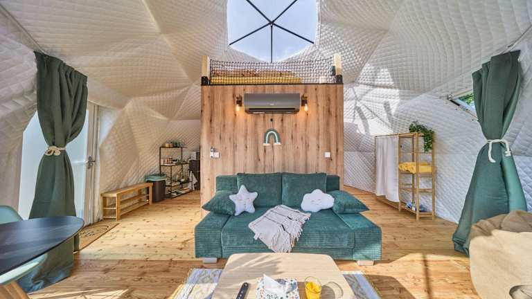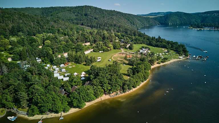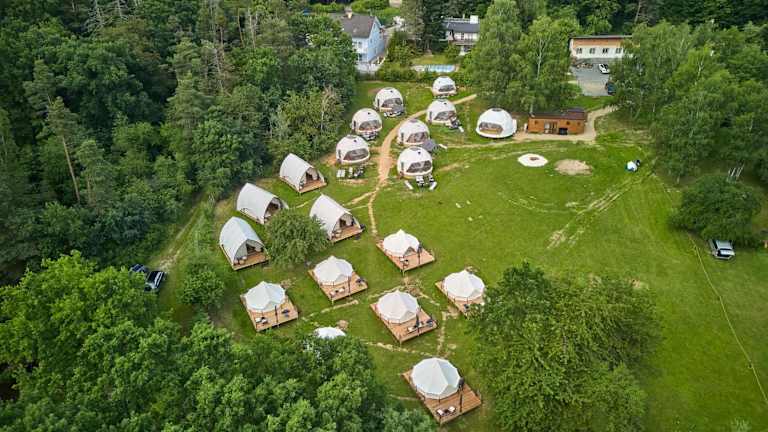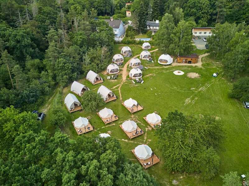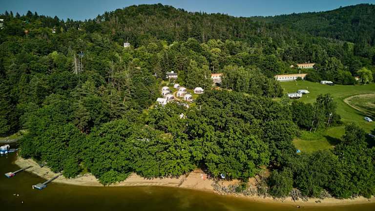 Glamping Slapy bietet moderne Wohneinheiten, die mit kostenlosem WLAN, Klimaanlage, Garten und Terrasse ausgestattet sind. Alle Unterkünfte verfügen über ein eigenes Badezimmer mit Dusche und kostenlosen Pflegeprodukten, sowie Hausschuhe.