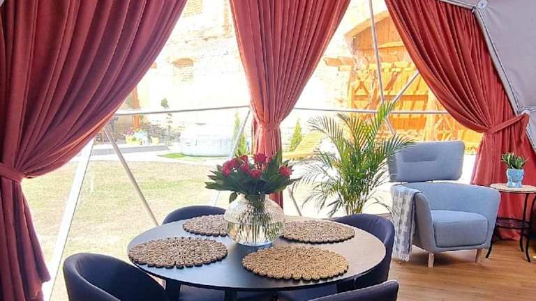 Glamping Tajemniczy Ogród bietet Übernachtungsmöglichkeiten in einer Zelt-Lodge mit einem Garten, einer Terrasse und Grillmöglichkeiten. Es besteht die Möglichkeit, kostenloses WLAN zu nutzen und die Übernachtung bietet zudem Gartenblick. Ein kostenloser Privatparkplatz steht zur Verfügung.