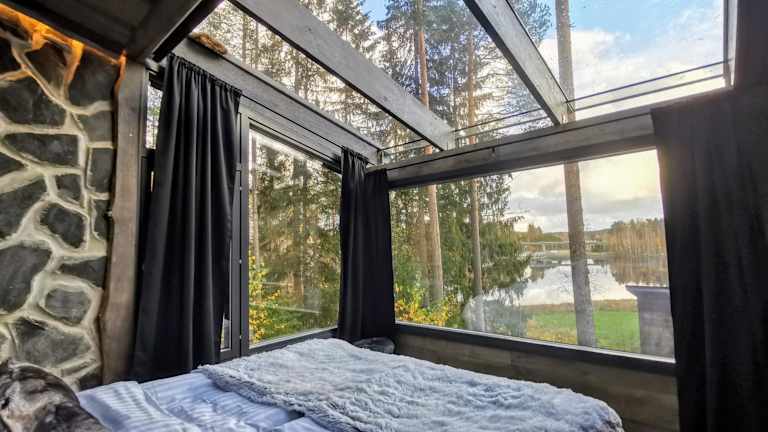 Das Hotel Glass Igloos by the water - Lasisviit in Laukaa bietet ein einzigartiges und unvergessliches Übernachtungserlebnis. Die klimatisierten Glasiglus sind direkt am Wasser gelegen und bieten einen atemberaubenden Blick auf den Fluss. Die Unterkunft verfügt über modernes Interieur, kostenfreies WLAN und Privatparkplätze. Genießen Sie Ihren Aufenthalt in einem gemütlichen Ferienhaus mit voll ausgestatteter Küchenzeile und Terrasse. In der Umgebung können Sie wandern und Sehenswürdigkeiten wie das Alvar Aalto Museum besuchen.
