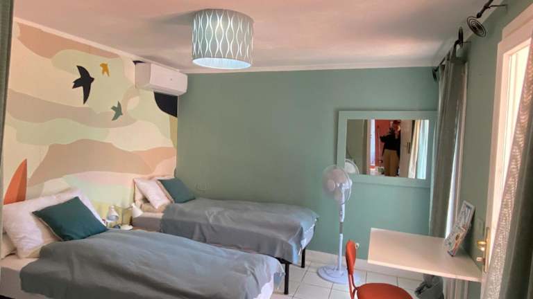 Die klimatisierte Ferienwohnung besteht aus zwei Schlafzimmern, einer Küche und einem Badezimmer. Zur Ausstattung gehört ein Flachbild-TV. Bettwäsche und Handtücher sind nicht im Preis enthalten und können gegen eine zusätzliche Gebühr gemietet oder selbst mitgebracht werden.