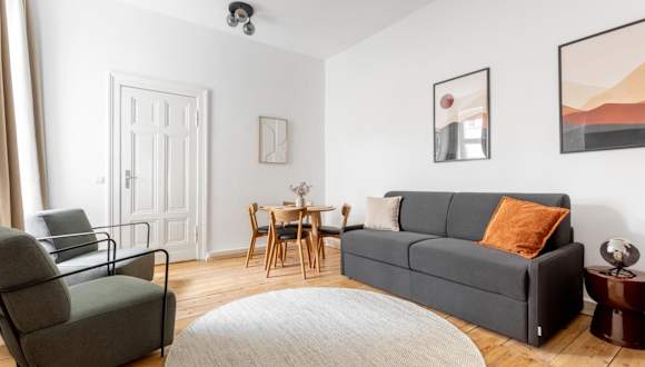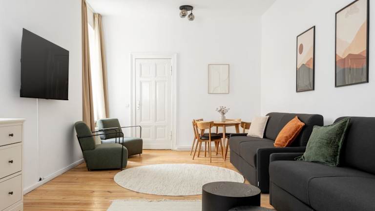 Global Living - Design Apartment I Central I Smart-TV I Kitchen I Berlin bietet komfortable Übernachtungsmöglichkeiten mit kostenlosem WLAN und einem Flachbild-TV in der Unterkunft. Diese Ferienwohnung umfasst zwei Schlafzimmer und ein Wohnzimmer und ist ideal für einen Aufenthalt in der Stadt.