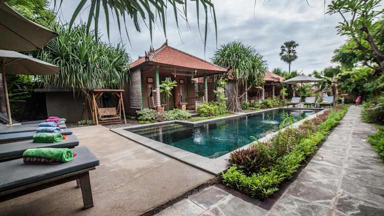 Das Global Royal Pemuteran ist der ideale Ort für einen erholsamen Urlaub in Pemuteran. Mit seinem Außenpool, dem schönen Garten und der Nähe zum Strand bietet es alles, was Sie für einen unvergesslichen Aufenthalt benötigen. Genießen Sie den Komfort der klimatisierten Zimmer mit kostenfreiem WLAN und entspannen Sie im voll ausgestatteten eigenen Bad. Das kontinentale oder asiatische Frühstück sorgt für einen perfekten Start in den Tag. Das Hotel bietet auch eine Kinderbetreuung an, damit Eltern sich entspannen können. Entdecken Sie die nahe gelegenen Sehenswürdigkeiten wie den Pulaki-Tempel und das Krisna Funtastic Land. Der internationale Flughafen Banyuwangi ist nur 60 km entfernt, und das Hotel bietet einen praktischen Flughafentransfer gegen Gebühr.