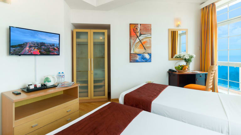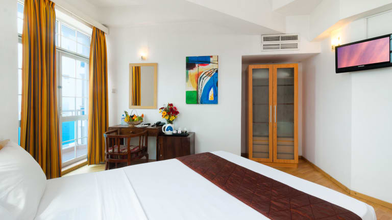 Das Global Towers Hotel & Apartments in Colombo bietet seinen Gästen eine erstklassige Lage direkt am Strand und ein gutes Preis-Leistungs-Verhältnis. Das Hotel verfügt über einen Außenpool, ein Fitnesscenter und ein Spa, in dem Sie sich mit Ayurveda-Anwendungen verwöhnen lassen können. Die Unterkünfte sind geräumig und bieten einen eigenen Balkon sowie elegante Badezimmer. Einige Zimmer verfügen sogar über eine Badewanne. Genießen Sie außerdem den atemberaubenden Ausblick von der Dachterrasse des Hotels und nutzen Sie den 24-Stunden-Zimmerservice.