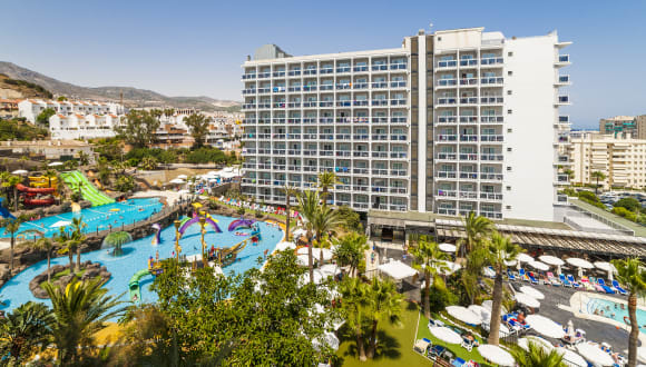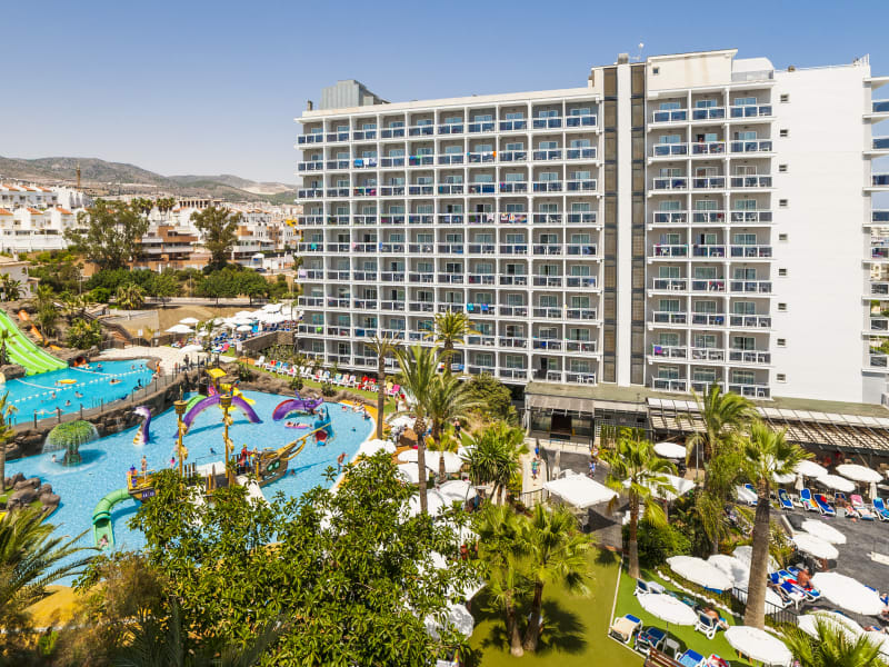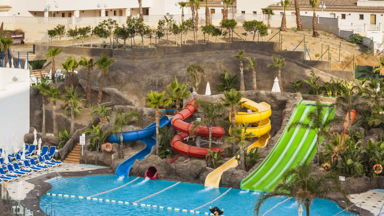 Das Hotel Globales Los Patos Park bietet einen eigenen Wasserpark mit verschiedenen Pools und Wasserrutschen. Die Erwachsenen können sich auf den Pool mit einer 4-Bahnen-Wasserrutsche freuen, während die Kinder im Kinderpool mit Wasserspielen und Rutschen Spaß haben können. Auf der Sonnenterrasse können Sie sich entspannen und im Garten mit Palmen verweilen. Das Hotel bietet zudem ein Animationsprogramm und einen Miniclub für die kleinen Gäste.