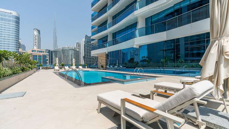 Exclusive GLOBALSTAY Apartments in Business Bay bietet moderne Wohneinheiten mit kostenlosem WLAN, Klimaanlage, einem Außenpool und einem Fitnesscenter. Zu den Einrichtungen zählen eine Sauna und ein Whirlpool sowie eine Sonnenterrasse zur Entspannung.