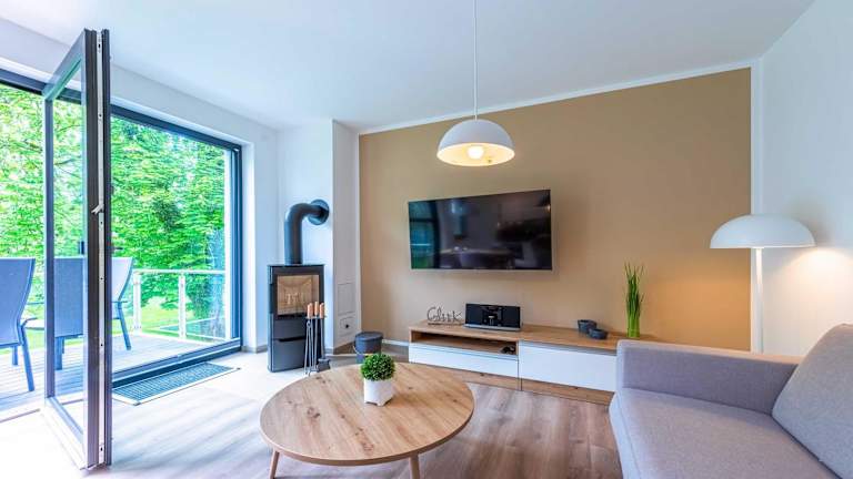 Das Glücksraum ist ein modernes Apartment, das sich durch einen Panoramablick und ein gemütliches Wohlfühlambiente auszeichnet. Die Unterkunft bietet eine Sauna, ein Fitnesscenter und einen Garten mit Gartenblick. Kostenloses WLAN ist in der gesamten Unterkunft verfügbar.