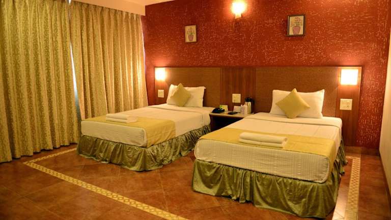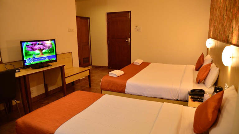 Die Zimmer im Goa Woodlands Hotel sind komfortabel eingerichtet und bieten Annehmlichkeiten wie einen Kleiderschrank, einen Flachbild-TV und ein eigenes Bad. Bettwäsche und Handtücher werden gestellt. Jedes Zimmer verfügt auch über einen gemütlichen Sitzbereich, in dem Sie sich entspannen können.