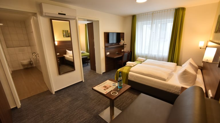 Das Goethe Conference Hotel by Trip Inn in Frankfurt am Main ist eine moderne Unterkunft in günstiger Lage, nur wenige Minuten von der Messe Frankfurt entfernt. Die stilvoll gestalteten Zimmer bieten Annehmlichkeiten wie Klimaanlage und Minibar. Das Hotel verfügt über ein Restaurant, das internationale Gerichte mit regionalen Einflüssen serviert. Parkplätze stehen gegen Gebühr zur Verfügung. Der Hauptbahnhof und der internationale Flughafen Frankfurt am Main sind leicht zu erreichen.