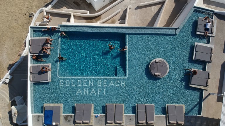 Entspannen Sie sich am Außenpool des Golden Beach Resort Anafi und genießen Sie die Sonne. Die Umgebung bietet zudem zahlreiche Möglichkeiten für sportliche Aktivitäten wie Schwimmen, Schnorcheln oder Wandern.