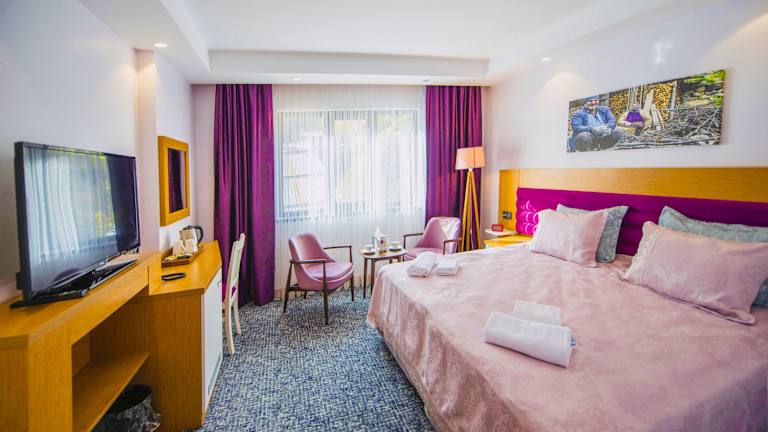 Das Golden Inn Hotel Uzungöl bietet klimatisierte Zimmer mit modernem Komfort. Jedes Zimmer ist mit einem Schreibtisch, einem Wasserkocher, einer Minibar, einem Safe und einem Flachbild-TV ausgestattet. Das eigene Badezimmer verfügt über eine Dusche. Bettwäsche und Handtücher werden gestellt, um Ihren Aufenthalt so angenehm wie möglich zu gestalten.