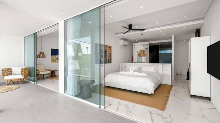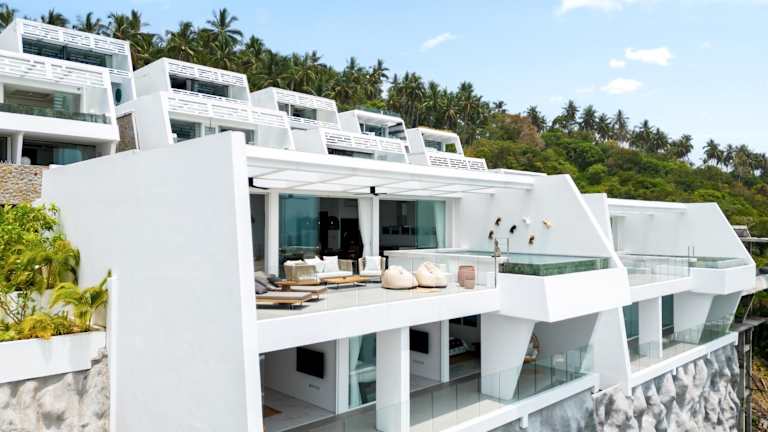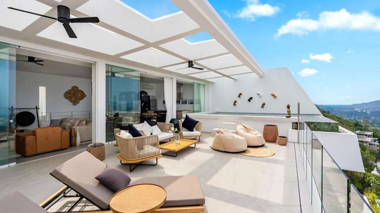 Die Zimmer der Golden Lotus Villas verfügen über eine Terrasse mit Meerblick, einen Sitzbereich, einen Flachbild-TV und ein eigenes Badezimmer, das mit einem Bidet und einem Haartrockner ausgestattet ist.