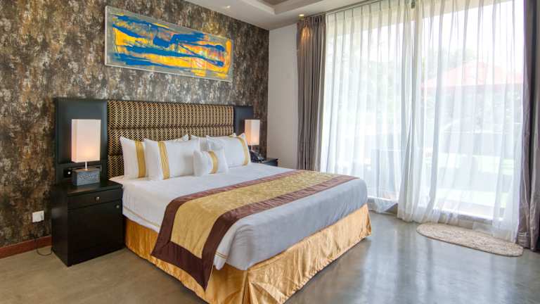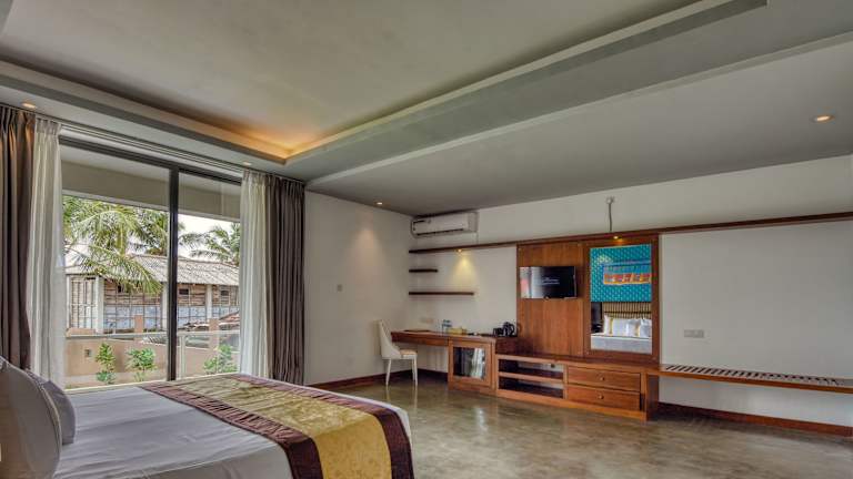 Die Zimmer der Unterkunft sind mit einem Schreibtisch, einem eigenen Badezimmer, einem Safe und einem Balkon ausgestattet. Einige Wohneinheiten bieten Gartenblick.