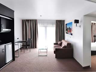 Die Zimmer sind mit Klimaanlage und Heizung ausgestattet, viele verfügen über einen Balkon oder eine Terrasse. Zur Grundausstattung gehören ein Doppelbett oder verschiedene Bettarten sowie eine Kochnische mit Mikrowelle. Die Zimmer sind mit einem Telefon, einem TV-Gerät und kostenlosem WLAN ausgestattet. Jedes Badezimmer ist mit einer Dusche ausgestattet. Rollstuhlgerechte Zimmer sind ebenfalls verfügbar.