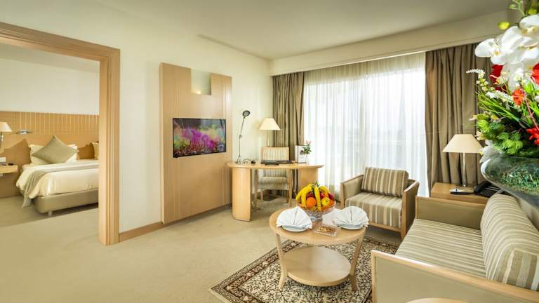 Das Hotel bietet 42 Einzel- und 88 Doppelzimmer auf 9 Etagen. Die Zimmer sind modern eingerichtet und verfügen über Annehmlichkeiten wie Klimaanlage, Safe, Minibar und kostenfreies WLAN. Einige Zimmer bieten auch einen Balkon mit Blick auf die Stadt oder das Meer. Die Badezimmer sind luxuriös ausgestattet.