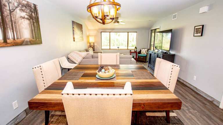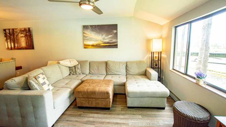 Das klimatisierte Ferienhaus im Golf and Tennis Community-Lakeview Oasis-Private Patio bietet Ihnen einen gemütlichen Sitzbereich, in dem Sie sich entspannen können. Die voll ausgestattete Küche mit Kühlschrank ermöglicht es Ihnen, Ihre eigenen Mahlzeiten zuzubereiten. Ein Fernseher steht ebenfalls zur Verfügung, um Ihre Lieblingssendungen zu genießen.