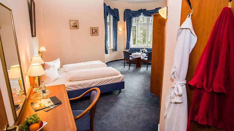 Das Golfhotel Denzerheide in Bad Ems ist der perfekte Ort für Golfliebhaber und Reisende, die eine entspannte Zeit in einer malerischen Umgebung verbringen möchten. Genießen Sie eine Partie Golf auf einem der ältesten Golfplätze Deutschlands oder erkunden Sie die schöne Denzerheide bei einer Wanderung. Entspannen Sie sich bei einer Wellnessanwendung oder besuchen Sie die touristischen Attraktionen von Bad Ems, einschließlich der Therme. Die Stadt Koblenz ist nur 10 km entfernt. Im Golfhotel Denzerheide können Sie sich nach einem ereignisreichen Tag auf gehobene Küche freuen, die eine breite Auswahl an internationalen Gerichten und saisonalen Spezialitäten bietet.