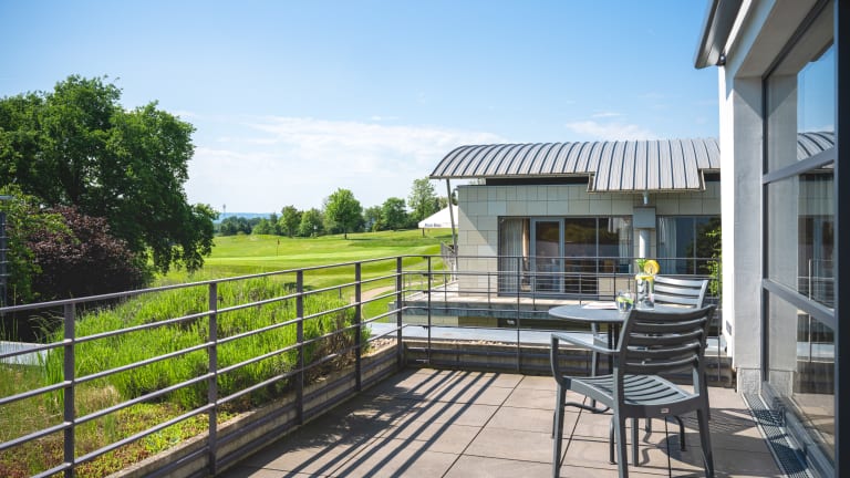 Am Stadtrand von Fröndenberg genießt dieses moderne Golfhotel eine malerische Lage im Grünen. Freuen Sie sich auf Wellnesseinrichtungen, ein Restaurant mit Panoramablick, einen direkt an das Hotel angrenzenden Golfplatz und geräumige Zimmer mit kostenfreiem WLAN. Die 16 hellen Zimmer mit bodentiefen Fensterfronten verfügen über ein stilvolles Interieur und Massivholzmöbel. Zu den Annehmlichkeiten gehören auf jedem Zimmer eine Kaffeemaschine oder ein Heißgetränkezubereiter, 1 kostenfreie Flasche Mineralwasser und ein Balkon oder eine Terrasse. Jeden Morgen können Sie sich an einem herzhaften Frühstücksbuffet im Restaurant stärken. Frisch zubereitete internationale Gerichte werden Ihnen im Restaurant Il Campo nebenan serviert und bietet eine herrliche Panorama Aussicht auf den Golfplatz Gut Neuenhof. Wohltuende Massagen können im Kingas Spa & Beuty gebucht werden, welches sich direkt im Hotel befindet. Gäste nutzen die Sauna und den Welless Bereich kostenfrei. Bitte reservieren Sie für Massagen und Beautyanwendungen im Vorfeld einen Termin. Kostenfreie Parkplätze, sowie kostenpflichtige E-Ladesäulen, stehen in direkter Hotelnähe zur Verfügung.