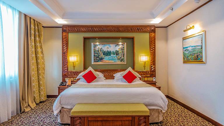 Am Nordufer des Kivu-Sees in Afrika liegt Goma, die Hauptstadt von Nord-Kivu. Im Herzen dieser lebendigen und einzigartigen Stadt befindet sich das Goma Serena Hotel. Mit seiner unvergleichlichen Lage im Stadtzentrum ist das einzige 5-Sterne-Hotel in Goma ideal für Geschäftsreisende, Urlauber und Familien, die unvergessliche Erlebnisse suchen. Vom ersten Moment Ihrer Ankunft an werden Sie von unseren Mitarbeitern mit dem zuvorkommenden Service empfangen, für den Serena Hotels bekannt ist. Dank der echten kongolesischen Gastfreundschaft und Herzlichkeit werden Sie sich wie zu Hause fühlen und in die faszinierenden Bräuche und den Charakter dieses noch unentdeckten Reiseziels eintauchen. Inspiriert vom Charme und der Eleganz des reichen Erbes der Demokratischen Republik Kongo, besticht das Goma Serena Hotel durch seine wunderschöne Lage direkt am Wasser, sein tropisches Ambiente, einen Swimmingpool in olympischer Größe und die besten Spa-Angebote der Stadt. Das Goma Serena Hotel ist eine Oase der Ruhe nach einem Tag voller Reisen, Meetings oder Stadterkundungen. Genießen Sie köstliche internationale Küche und exklusive Cocktails in einem unserer drei Restaurants und Lounges. Alle 110 Zimmer des Hotels sind aufwendig gestaltet und bieten einen atemberaubenden Blick auf den Kivu-See sowie jeglichen modernen Komfort, den anspruchsvolle Reisende erwarten. Für Tagungen, Hochzeiten und besondere Anlässe bieten wir eine Reihe beeindruckender Veranstaltungsräume, die durch die Unterstützung unseres kompetenten Veranstaltungsplanungs- und Catering-Teams ergänzt werden.